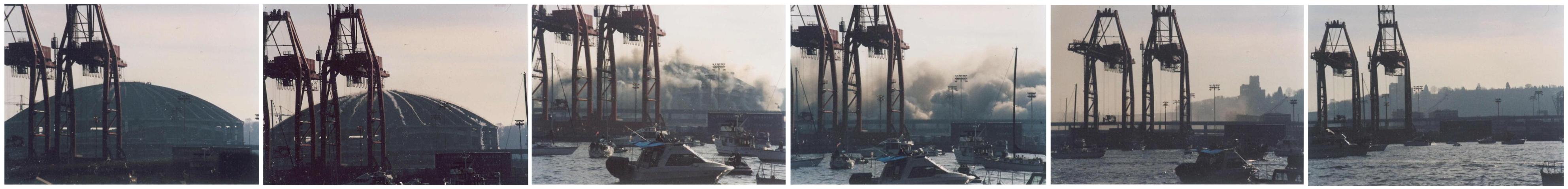 Photo sequence of King Dome implosion take in Elliot Bay from my friend Tim's boat.